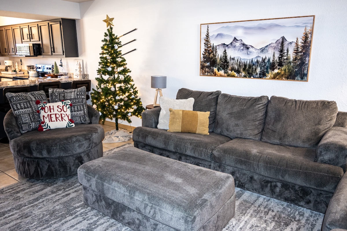 Holiday vibes! 3 decks, hot tub & mountain charm!