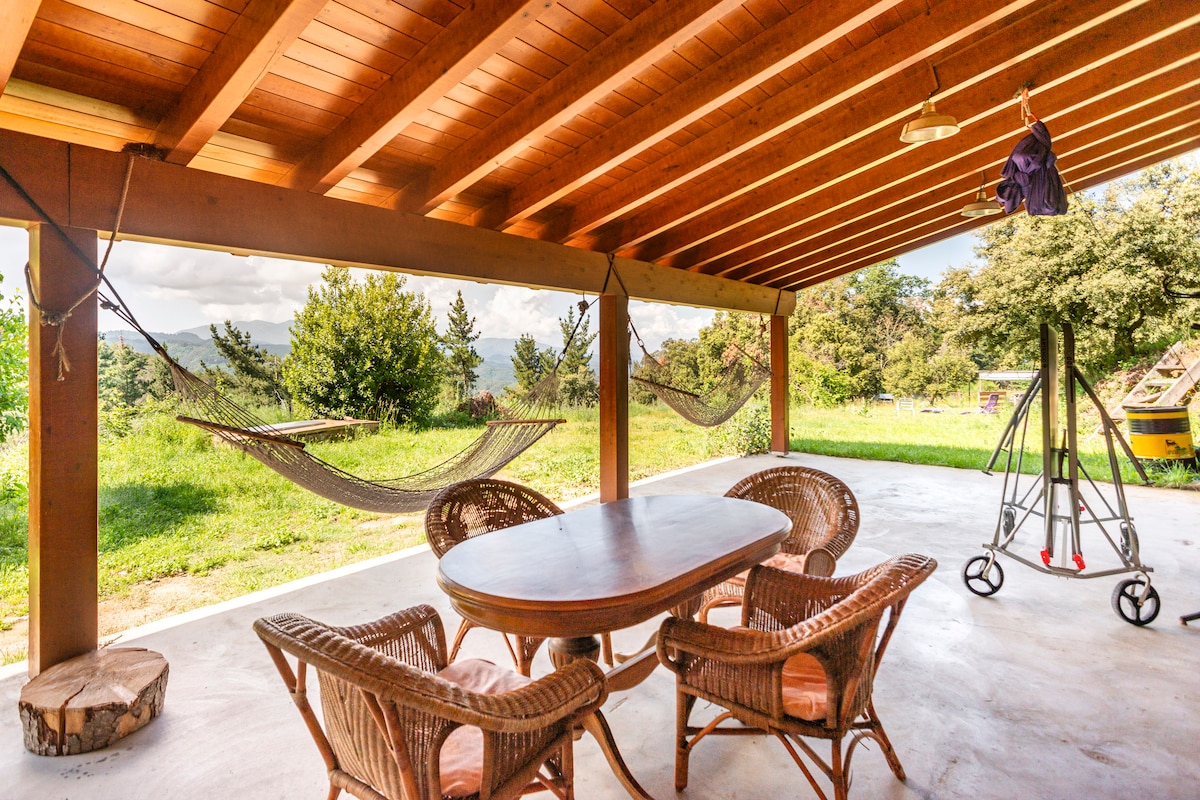 Les Guilleries'in göbeğinde, 950 m yükseklikte "Korunan Doğal Alan"da bulunuyoruz. Dinlenmek ve aktiviteler yapmak için harika bir yer. Rahat, yenilenmiş alanları ve rustik havası olan restore edilmiş bir çiftlik evidir. Çevre kendinizi dünyadan izole etmenizi sağlar (9 km'lik orman yolu iyi durumda). En yakın şehir merkezi 18 km uzaklıktadır, ancak aynı zamanda gezilecek ilginç yerlere de yakındır (tarihi, kültürel, gastronomik...). Çayır dairenin bir uzantısıdır.