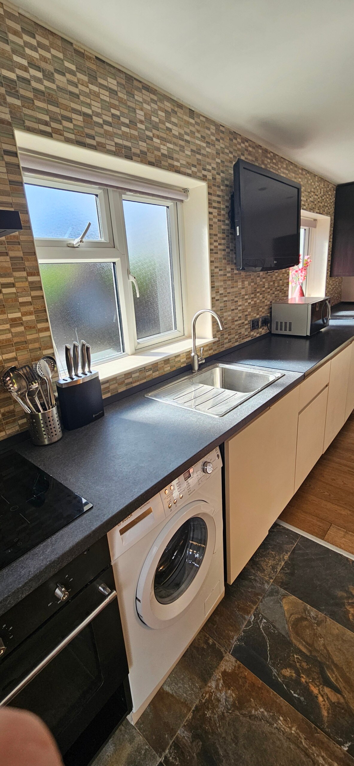 Derin bir uyku için ödüllü OTTY şilteleri, sürgülü aynalı gardıroplar ve eşyalarınız için geniş depolama alanı ile döşenmiş 2 yatak odası. Çelik küvetli ve duşlu lüks banyo. Açık planlı oturma odası/yemek ve mutfak alanı, mekanınızı aydınlatmak için kristal avize, bilardo masası, 55 inç akıllı TV, rahat L kanepe, dumanlı cam kahve ve yemek masası. Çamaşır makinesi ve bulaşık makinesi de dahil olmak üzere cihazlarla dolu mutfak.
