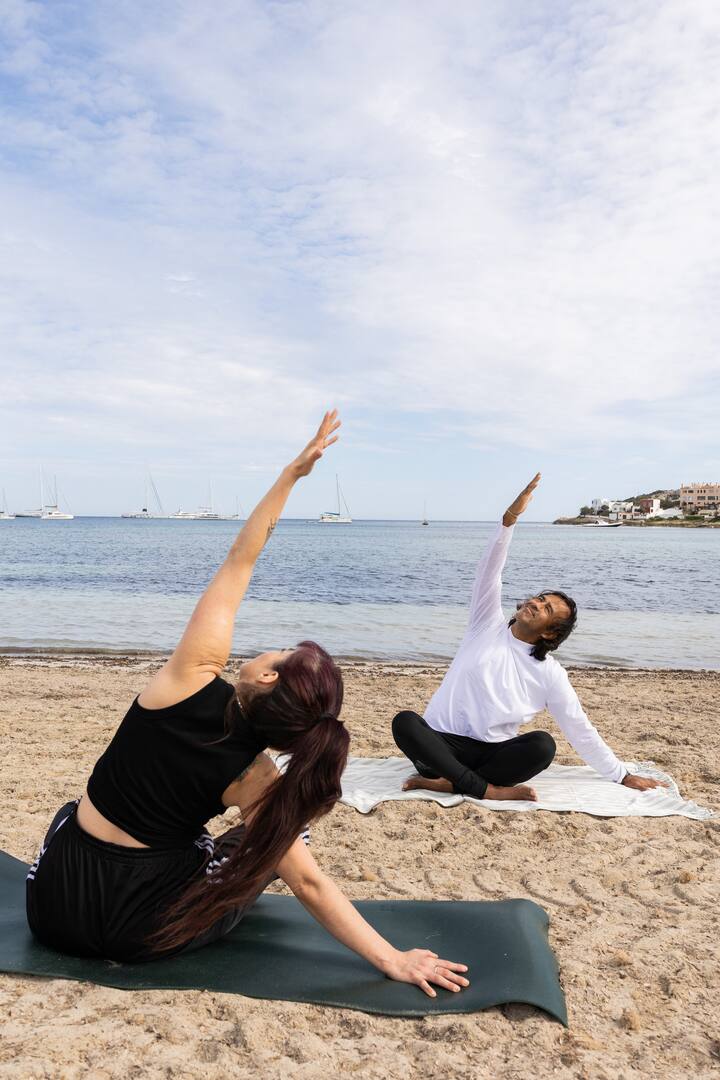 İbiza'da plajda yoga