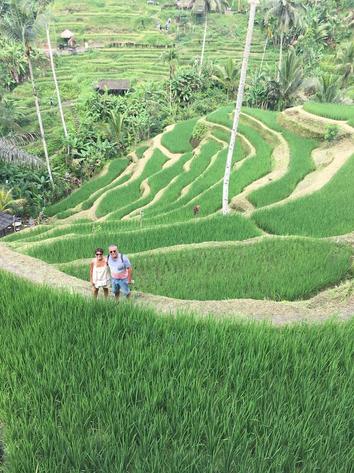 Melihat dan berjalan di sawah bertingkat