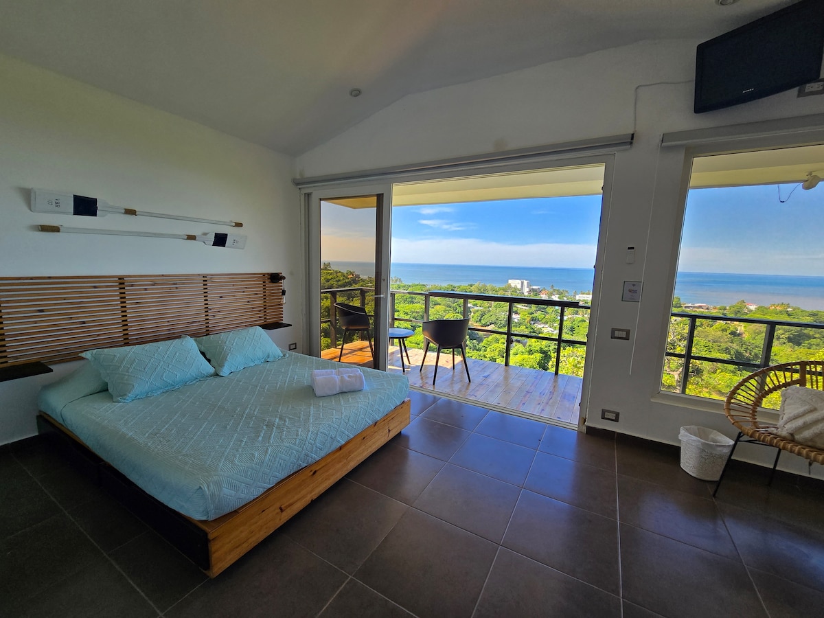Surf City'nin bir parçası olan Sunzal'ın güvenlikli Cerromar topluluğundaki bu huzurlu misafir evinde muhteşem okyanus manzarasına uyanın. El Tunco ve El Sunzal'ın yukarısında yer alan bu havadar uçurum kenarındaki inziva yeri, manzarayı izlemek, enerji toplamak ve dinlenmek isteyen çiftler veya yalnız seyahat edenler için idealdir. Özel havuzun yanında dinlenin, hamakta rahatlayın veya arabayla kısa bir sürüş mesafesindeki sörf molalarına ve sahil kafelerine gidin.
