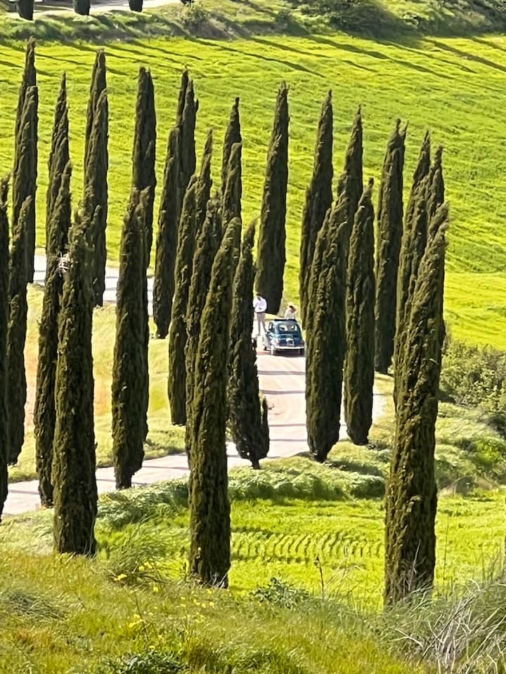 Toskana tepelerinde klasik otomobil sürüşü