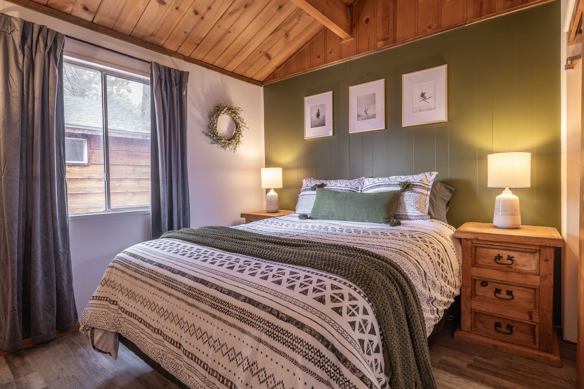 Ulusal ormana karşı yuvalanmış- Big Bear'ın sunduğu her şeye dakikalar mesafesinde. Göle 10 dakika yürüme mesafesinde. Arka kapımızdan yürüyüşe çıkabilirsiniz. Kulübemiz çok özenle dekore edilmiştir. Modern yüzyıl ortası mobilyaları. Mutfak tencere, tava, tabak ve çok daha fazlasıyla doludur. 4 kişilik oturma yeri. Yatak odaları - Yataklarda pamuklu nevresimler. Propanlı barbekü. Evcil hayvan dostuyuz. Köpek yatağı, kaplar ve ödüller sağlanır. Not - Kış aylarında 1 araçla sınırlıdır.