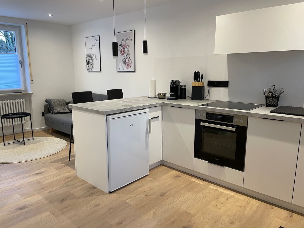 Doğanın çevrelediği kırsal bir atmosferde pastoral bir daire. Yeni yenilenmiş dairede modern bir mutfak, yatak odası, banyo ve şık, açık bir yaşam/yemek alanı bulunmaktadır. Küçük bir orman yerleşiminde bulunmaktadır ve sizi harika yürüyüşlere davet eder. Konaklama yerinde ücretsiz kablosuz internet bağlantısı ve ön kapının önünde bir park yeri bulunmaktadır. Bu modern daire, tatilinizde kalbinizin arzuladığı her şeyi sunuyor. Yaklaşık 30 m2 yaşam alanında keyifli tatiller.