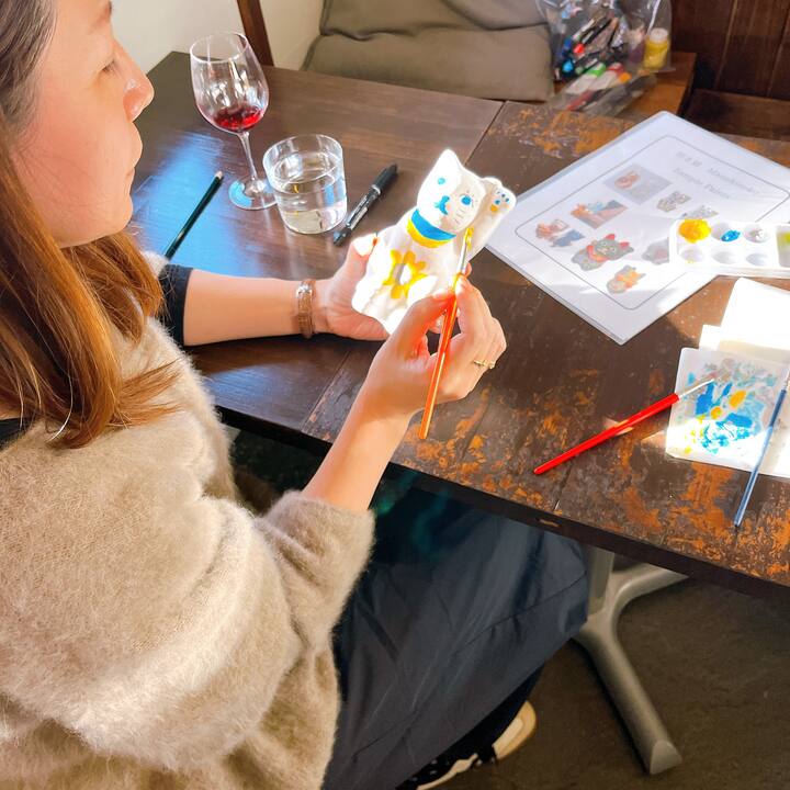 北鎌倉の古民家カフェで招き猫絵付け体験