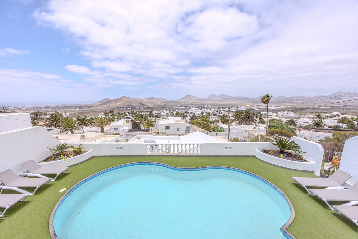 Bu güzel villa, tarihi Teguise kasabasına sadece 1 km mesafededir. Villa, Costa Teguise, Arrecife ve hatta Fuerteventura'ya kadar muhteşem deniz manzarasına sahiptir. Villanın iyi boyutlu ısıtmalı yüzme havuzu, dairesel oturma odası, 3 yatak odası, 2 banyosu, açık planlı bölünmüş yaşam alanı, modern mutfağı ve masa tenisi masası ve langırtlı büyük oyun odası vardır. Plajlara arabayla sadece 15 dakika mesafededir.