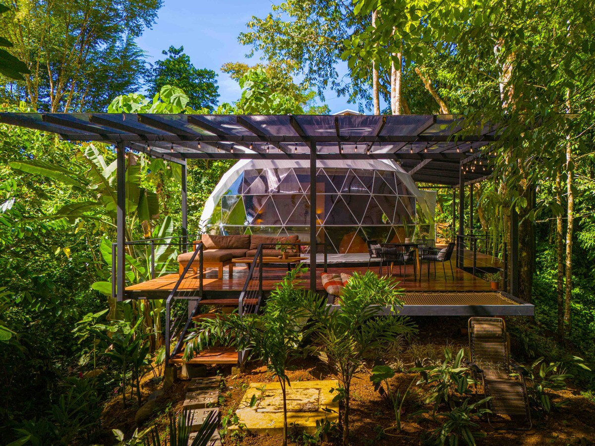 Bu unutulmaz kaçamak doğayla yeniden bağlantı kurmanızı sağlayacak. Ojochal Dome sizi Kosta Rika'nın gerçek ormanına sürüklüyor. Dome'un üzerinde bulunduğu yarımada, hayvanların geçişi için doğal bir koridor görevi gören “Las Eses” Nehri ile çevrilidir; neredeyse uluyan maymunlar, beyaz yüzlü kapuçinler, tukanlar, koatiler ve diğer birçok vahşi hayvanın ziyaretini garanti eder. Verandadan sadece birkaç adım ötede özel bir şelalenin tepesini görebilir ve duyabilirsiniz. Bir dalış yapın, taze ve canlıdır.