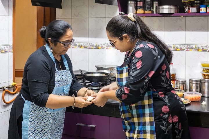 Rustik bir Hint evinde Hint yemekleri pişirme dersi