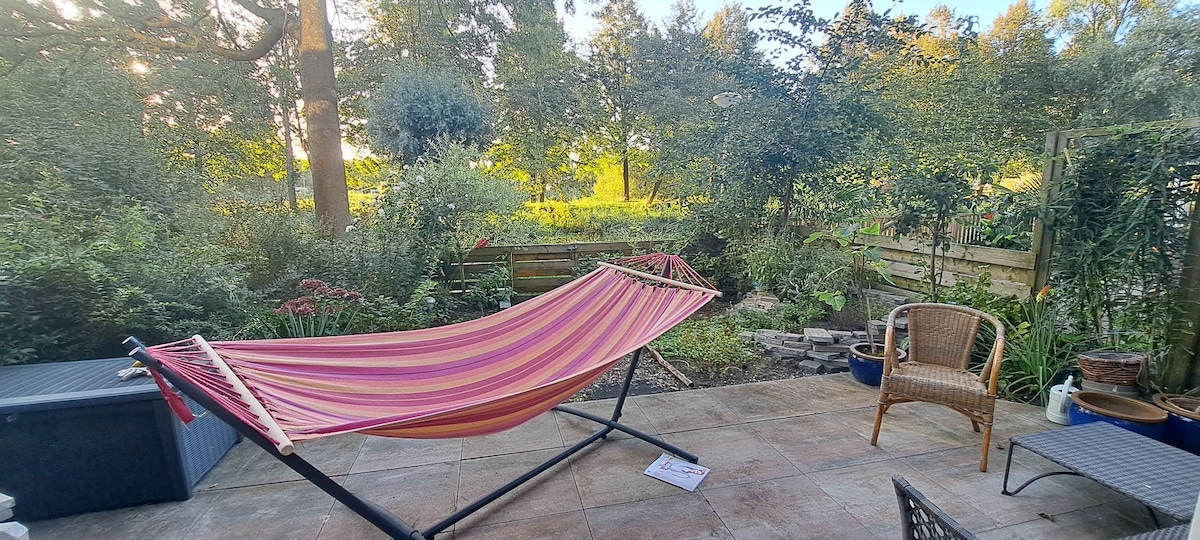 Bir aile evinde bahçe manzaralı bu güzel stüdyo, yoğun şehir merkezine sadece 15 dakika mesafede huzurlu bir yerdir. Evin girişi ortaktır, biz üst katlarda yaşıyoruz, ancak stüdyonun koridordan kendi girişi vardır ve manzaralı bahçeye özel erişimi ve bir kanala girişi vardır. Stüdyoda, konaklamanızı mümkün olduğunca elverişli hale getirmek için temel pişirme ekipmanlarına (mikrodalga fırın, ocak, tava, kahve makinesi vb.) sahip bir mutfak, duş, tuvalet ve oturma alanı bulunmaktadır.