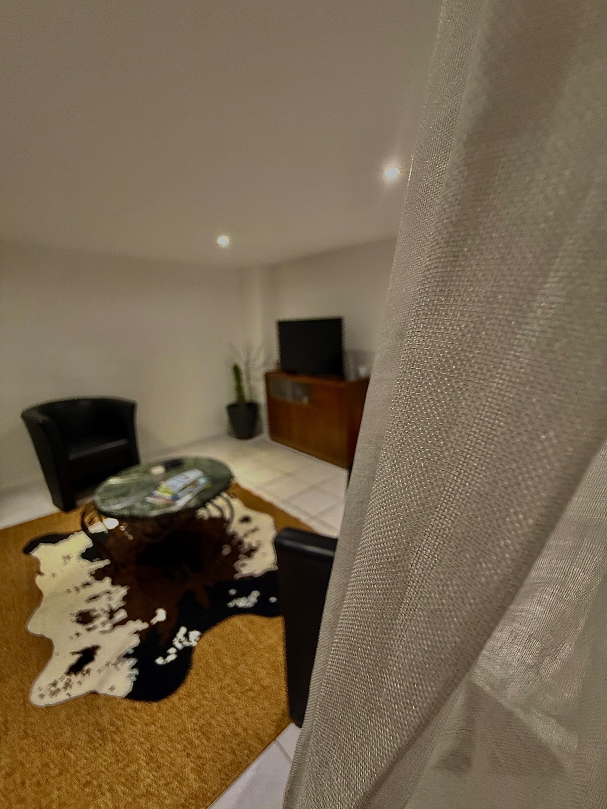 Ein kleines gemütliches Appartement.Zentral, aber ruhig in der Natur gelegen. Das Apartment bietet alles für einen kurzen oder längeren Aufenthalt. Es verfügt über einen schönen Schlafbereich, voll ausgestattete Küche, sowie einen gemütlichen Wohnbereich mit TV und Schreibtisch.Zu dem läd eine kleiner gemütlicher Platz auf der Terrasse zum Verweilen ein.Unser Schwimmteich bietet reichlich Abwechslung. Kostenloser Parkplatz direkt vor der Tür. Fahrräder können im Hof parken.
