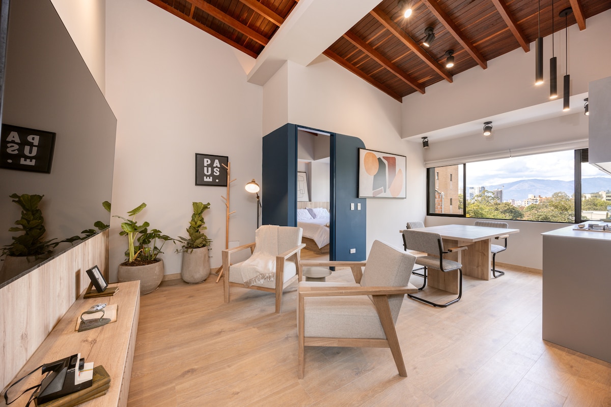 Laureles'te Büyüleyici Çatı Katı/Yeşil Manzaralar|Büyük Yatak+Klima