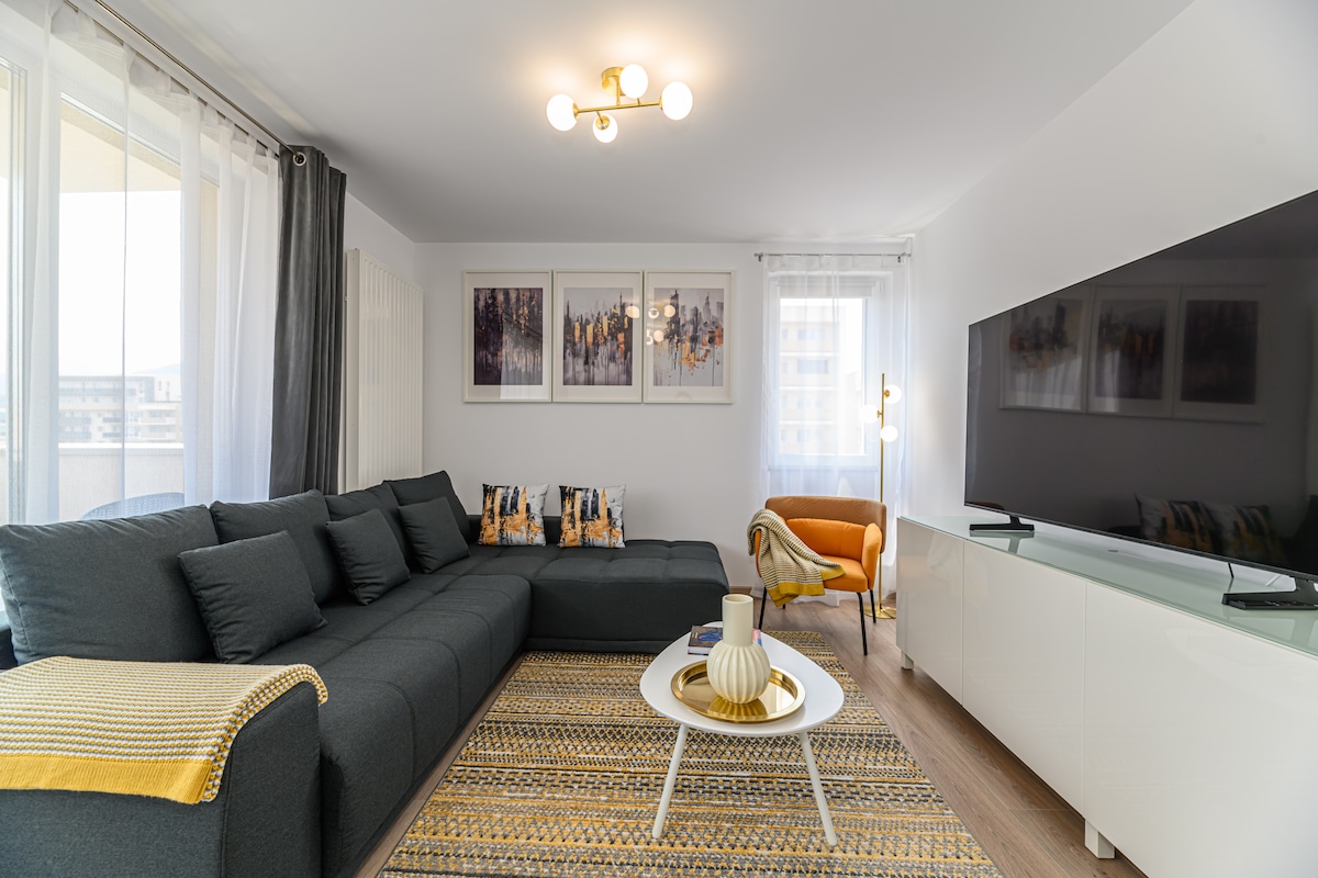 Stylish apartment with a stunning view of the Brasov citadel, offering accommodation for up to four guests. The apartment is located in a quiet area and will offer you a peaceful stay while also providing quick and convenient access to the city center. Most of the main attractions in the Historic City Center, including many shops and restaurants, are only 5 minutes away. The apartment comes with all of the amenities you may need including WiFi, cable TV, and a washing machine.