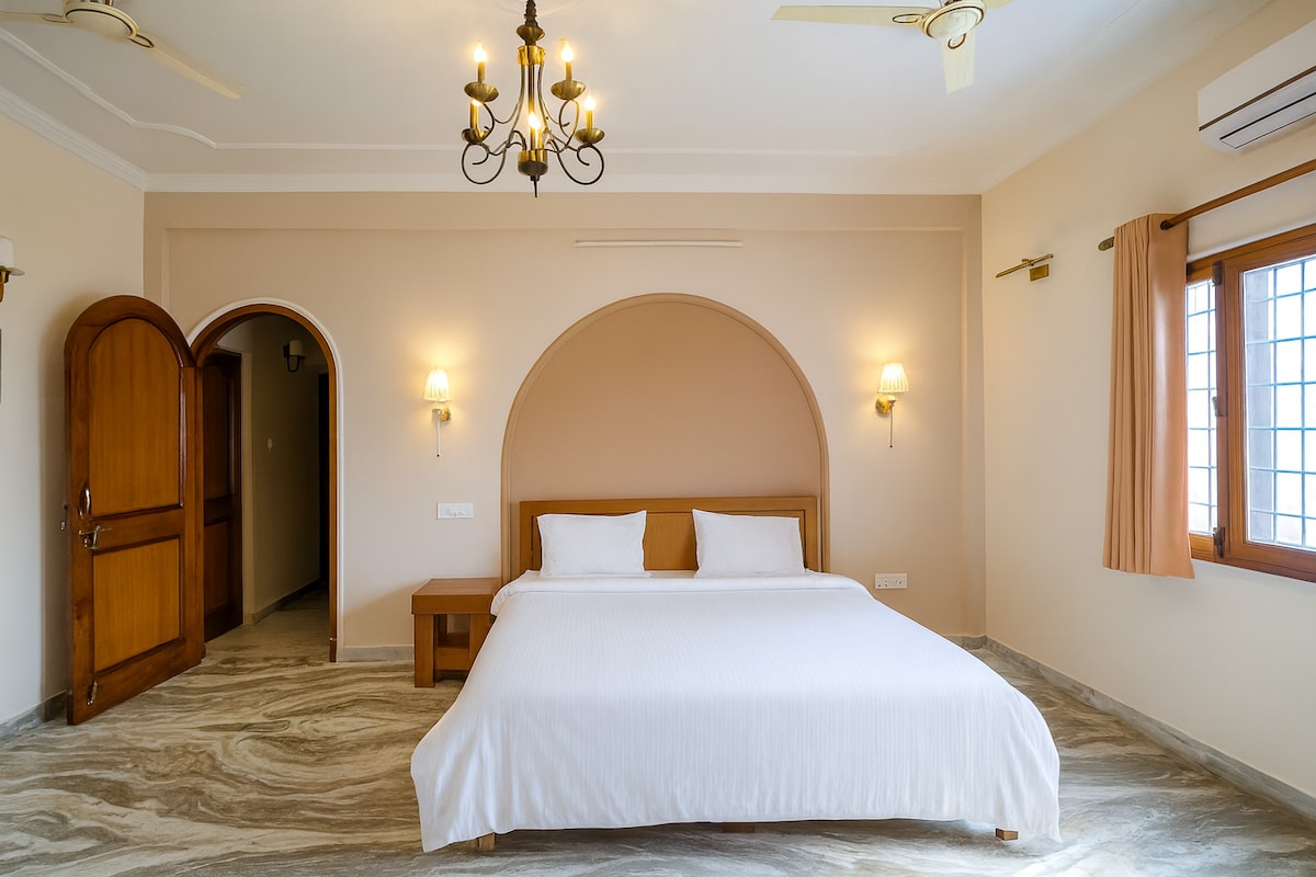 *Topluluk kuralları nedeniyle yerel rezervasyonları kabul etmiyoruz. Rezervasyon yapmadan önce lütfen dikkat edin* Doon Den'e hoş geldiniz. Dehradun'un merkezinde sıcak, Hint esintili lüks 3BHK. • Saat Kulesi'ne sadece 4 dakika, Doon Okulu'na 2 dakika. • Her odada klasik ahşap ve rattan mobilyalar ve balkonlar. • Yumuşak sandal ağacı aroması ve huzurlu, sade bir ortam. • Tüm OTT platformlarına sahip 75 inç 4K akıllı TV • Yüksek hızlı kablosuz internet bağlantısı, modern mutfak ve olanaklar • Kusursuz temiz ve son derece hijyenik; tüm misafirler için idealdir.