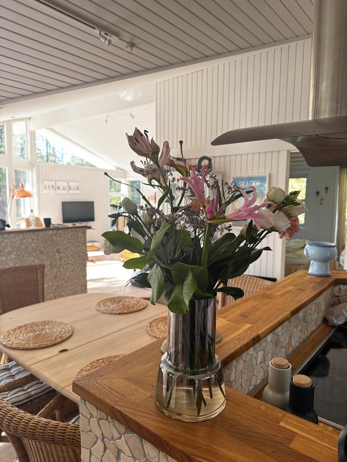 This house is our magical “summer dream” and we hope you’ll enjoy it as much as we do 💗 It’s the perfect setting for a great family holiday. Only a 5 min. walk to the beach down a lovely path and just a few minutes driving to Ålbæk town and 20 min. to Skagen. The house has 4 bedrooms, 2 bathrooms, activity room, open kitchen and dining space and livingroom as well as a terrace with a garden around it with a playground and sandbox. It also has a sauna, outdoor bath and wood-fired hot tub.