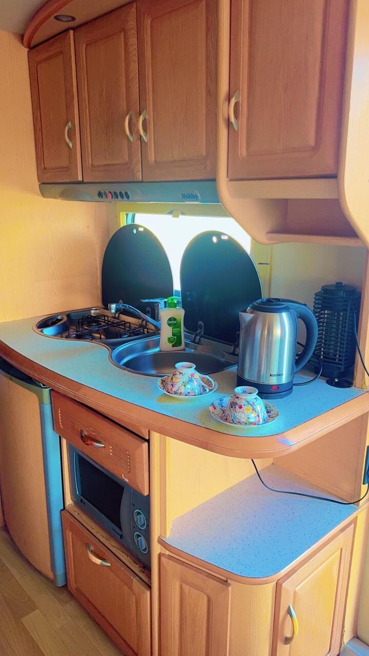 Ana yatak odası Tek Uyku Sohbet Oturumu Mutfak, banyo, yemek masası, mini buzdolabı, akıllı TV. Karavanın dış cephesinin içeriği: Açık Hava Yükseltilmiş Oturum Tam Mutfak Banyo Sandalyeleri Ches Projektörü Tribbled floor session