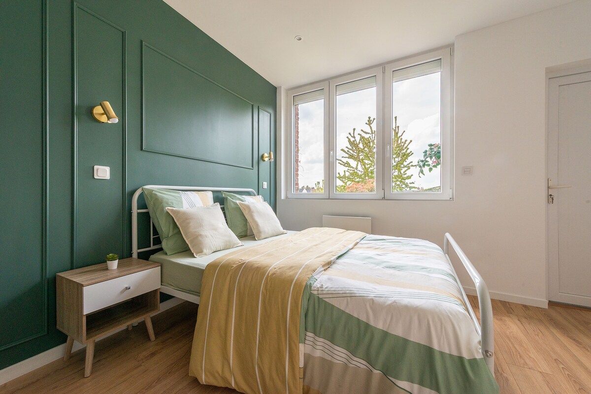 - Şehir merkezine ve mağazalara 2 dakika, Cambrai tren istasyonuna 10 dakika yürüme mesafesinde bulunan sessiz, modern ve tasarım bir daire. - Wi-Fi ile tamamen yenilenmiş tüm konfor. - Amerikan tipi buzdolabı, bulaşık makinesi ile tam donanımlı açık mutfak - Duş ve küvetli banyo. - King Size yatak, dolap ve TV ile donatılmış bir yatak odası - Çamaşır makinesi bulunan bir çamaşır odası - Bir tuvalet - Çekyat - Yatak takımı, havlu ve eldivenler mevcuttur! - Senseo kahve makinesi