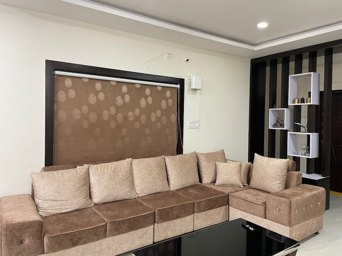 3 misafiri ağırlamak için 2. kattaki mükemmel geniş ve huzurlu 1 BHK dairenize hoş geldiniz. NOT: Asansör yoktur. Bu modern ev, Haydarabad şehrinin göbeğinde konforlu ve şık bir konaklama sunuyor. Geniş mutfağın ve yemek alanının keyfini çıkarın. Bu ev, şehre kolay erişimle konfor ve rahatlık için tasarlanmıştır. Dinlendirici bir deneyim için konaklamanızı bugün rezerve edin! Öne çıkan özellikler: 1 yatak odası ve banyo, mutfak ve yemek odası, çekyatlı oturma odası, akıllı TV, kablosuz internet bağlantısı, güvenlik kamerası, ön veranda.