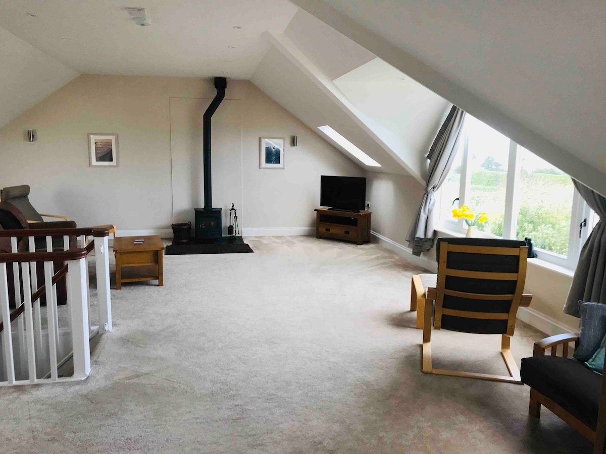 Stunning garden studio with sea views & log burner