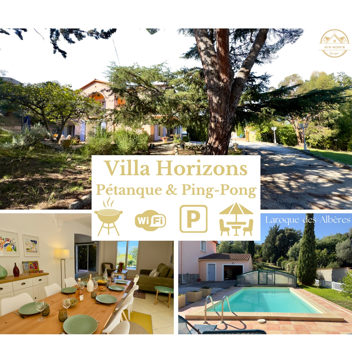 Perpignan'ın güneyinde, deniz ve Albera Massif arasında sessiz bir köy olan Saint-André'de yeni ve iyi donanımlı 100 m²'lik 4★ villa. Bölgemizi keşfetmek için ideal konumda, plajlara 10 dakika, Collioure'a 15 dakika ve İspanya'ya 30 dakika mesafededir. 6 kişi kapasiteli, 3 konforlu yatak odası, banyo ve duş odası, klima, hızlı kablosuz internet bağlantısı, özel otopark. Yemek ve dinlenme için donatılmış teras ve güvenli özel havuz. Yakınlarda mağazalar ve aktiviteler, sessiz yerleşim alanı.