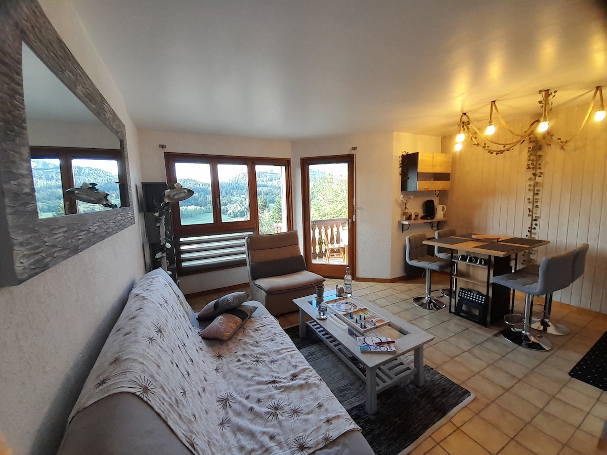 4 kişilik küçük dairemiz, dağ evimizin bahçe katında bulunmaktadır, tamamen bağımsızdır, güneye bakmaktadır. Konumu ve Doubs üzerindeki eşsiz manzarası, huzurlu, sakin ve doğaya yakın bir konaklama geçirmenizi sağlayacaktır. Konumu, Haut-Doubs bölgesini ve Jura dağını ziyaret etmek için idealdir. Kayak merkezlerine, göllere ve tüm olanaklara yakındır. Spor veya dinlenme tatili... Seçim sizin!