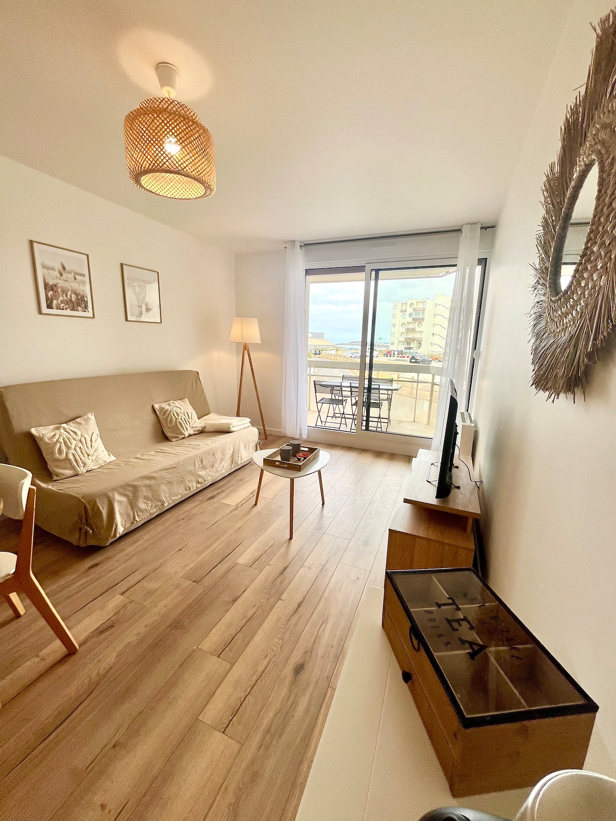 Güneye bakan deniz manzaralı balkon ile panoramik ve nefes kesici okyanus manzarası sunan bir konaklama. Boisvinet'in popüler bölgesinde, sahile 10 m mesafede, sakin bir rezidansın birinci katında bulunan daire. 160 cm çift kişilik yataklı, büyük dolaplı, sessiz bir oda. Duşlu bir banyo. Ranza (2 tek kişilik yatak) bulunan bir koridor. Tam donanımlı açık mutfaklı (bulaşık makinesi, mikrodalga fırın, buzdolabı, seramik ocak) deniz manzaralı bir oturma odası.