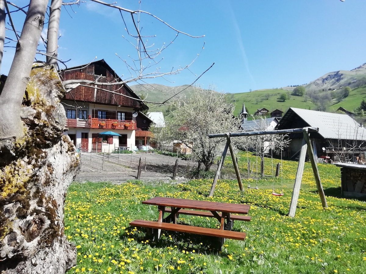 Ventelon'un küçük sessiz hameau'sunun yokuş yukarı kenarında güneşli veranda/bahçe/barbekü erişimi olan yerel aile evinde yeni bitmiş modern zemin kat süiti. Yüksek zirvelere bakan, çift kişilik yataklı ve tek kişilik ranza ile bir yatak odası ve ek tek kişilik yatak/kanepe bulunan bir oturma alanı (bebek yatağı/mama sandalyesi de mevcuttur). İndüksiyonlu ocak/fırınlı tam donanımlı mutfak. Vadinin güneşli tarafındaki muhteşem araziye doğrudan kayak turu/yürüyüş/yamaç paraşütü erişimi için mükemmel bir üs.