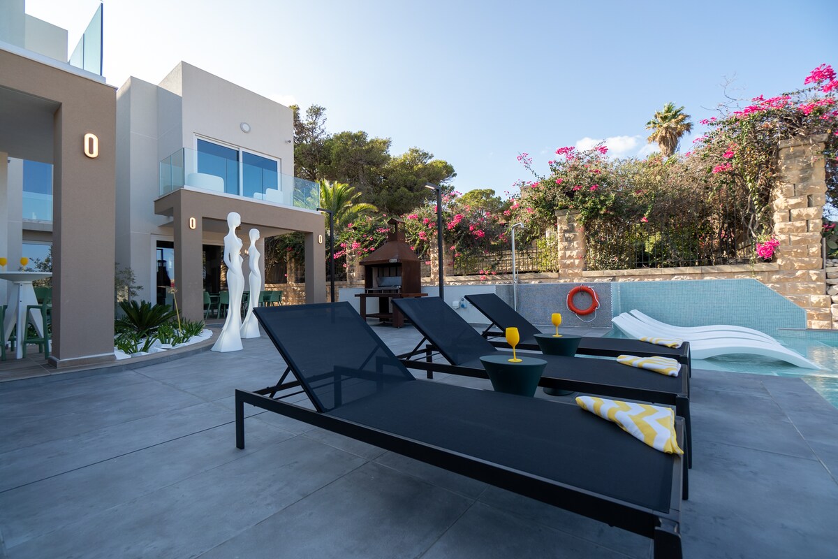 Bu çarpıcı villa, Marsaxlokk liman bölgesine kısa bir yürüyüş mesafesinde, Il-Ballut Rezerv Plajı'na 10 dakika yürüme mesafesinde ve Qrajten Plajı'na 15 dakika yürüme mesafesinde, Tas-Silg'in huzurlu bölgesinde bulunmaktadır. Bu ferah, yepyeni villa 4 katlı olup asansörle hizmet vermektedir. En fazla 17 misafir barındırabilir ve sinema odası, poker odası, oyun odası, sauna, jakuzi ve kırsalın muhteşem manzarasına sahip kendi özel havuzu gibi olağanüstü olanaklara sahiptir.