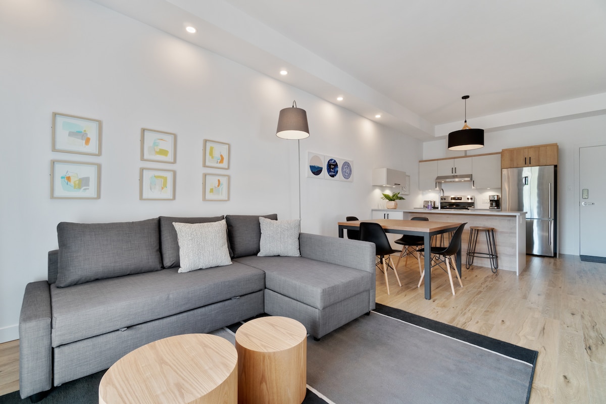 Stylish Condo, size yamaçlara yakın ideal bir konaklama sunar! ✦ CITQ: 300129 Tatilinizi en iyi şekilde geçirin: Mont Ste-Anne Ski Hill yakınında ideal✶ konumu. Tamamen yenilenmiş ve tam donanımlı✶ bir mutfak. Konforlu şilteli✶ queen boy yatak ve çift kişilik yatak. ✶ Portatif klima. ✶ Kablolu TV (CBC, RDS ve TVA Sports). ✶ Yan taraftaki komplekste açık yüzme havuzu ve sauna. ✶ Yandaki komplekste oyun odası ve spor salonu. ✶ Eğlenceli yaz zamanı için tenis kortu ve barbekü alanı.