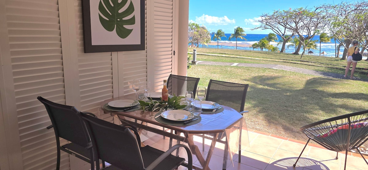 DESCRIPTION DU LOGEMENT : Propriétaire d'un grand studio équipé au sein même du magnifique village de vacances entre Sainte Anne et Saint François, je vous propose de passer de merveilleux moments de détente en famille dans un cadre idyllique. Sur site : 2 plages, 2 piscines, une supérette, une laverie, un espace bien-être, un snack, plusieurs restaurants face à la mer, un bar à cocktails et tapas et animations quotidiennes programmées. Accès aux transats des piscines et des plages