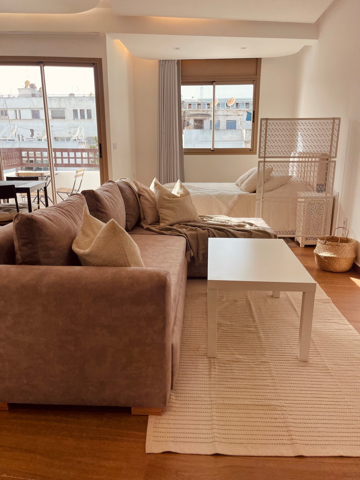 Başkent'in merkezinde ultra modern büyük stüdyo. Oturma odası, yatak odası, teras ve Amerikan mutfağından oluşmaktadır. Semtin otantik bir binasında, tüm olanaklara (restoranlar, alışveriş merkezi, ulaşım) birkaç dakika yürüme mesafesinde, Agdal'da ideal bir konumdadır. Daire, ihtiyacınız olan her şeye sahip olacak şekilde yenilenmiştir (wifi, TV, klima, ücretsiz yer altı otoparkı). Havaalanına ücretli servis hizmeti sunuyoruz (Rabat 250dh, Kazablanka 750dh)