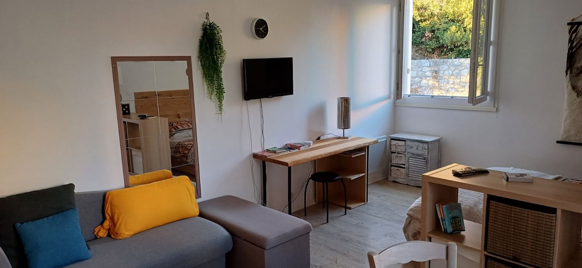 Bienvenue dans cet oasis paradisiaque , hâvre de paix et de sérénité ,grand bassin bio 300m3 ,nettoyé,baignade du 08/06 au 24 /09 cascade ponton,plantes exotiques,Studio neuf confortable clim,wifi,reception tv,literie 160,cuisine équipée,douche style italienne, terrain 300M2 ,bain soleil, barbecue ,plancha,éclairage nuit, sans vis à vis.(savon non fourni)ménage,draps et serviettes compris.chien accepté 15euros à payer sur le site ,nombreux chemins de rando à partir de la location.