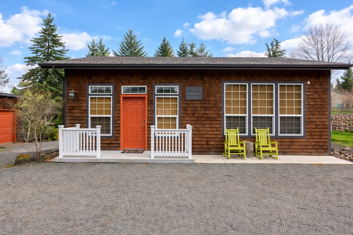 This small cozy log cabin is nestled in southwest Washington green wilderness. Find yourself peacefully snuggling in the swing on the front porch, listening to the birds chirping, hawk calling and frogs croaking. We are close to the airport, Amtrak station, art and culture, parks, and city center. You’ll love our retreat...the outdoor space, the comfy bed, and the amenities. Couples, solo adventurers, business travelers, and families alike will enjoy the comforts of home away from home!