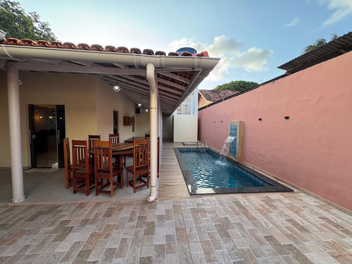 Casa located in Vila de Joanes/Marajó near the beach (Jacaré Restaurant Street). Klimalı 2 yatak odalı 7 kişilik yatak ve banyo çarşafları, mutfak gereçleri ile 7 kişiliktir. Çocuklarınız için ağaçlı ve salıncaklı arka bahçe, balkonda birkaç hamak sahibi, garaj, dışarıda 10 sandalye bulunan masa, elektrikli/gaz barbeküsü, buzdolabı, ocak, elektrikli ütü. Konforlu, havadar bir ev. Joanes Plajı bir balıkçı köyünde bir cennettir.