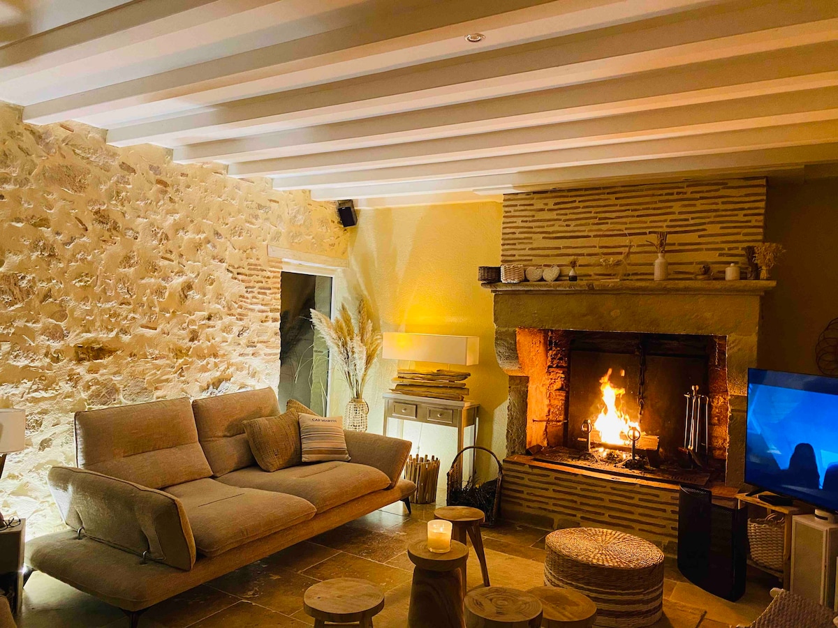 Evimiz 18. yüzyıldan kalma güzel bir taş binadır, tamamen yenilenmiştir. Sessiz ve ferah, havuzlu (Mart ayından Kasım ayına kadar ısıtılır) geniş bir arsa ve çevredeki kırsal bölgenin olağanüstü bir manzarası ile köyün merkezine anında erişim sağlar. Mağazalar, barlar, restoranlar, market, pazar ve hatta sinema birkaç dakika yürüme mesafesindedir.