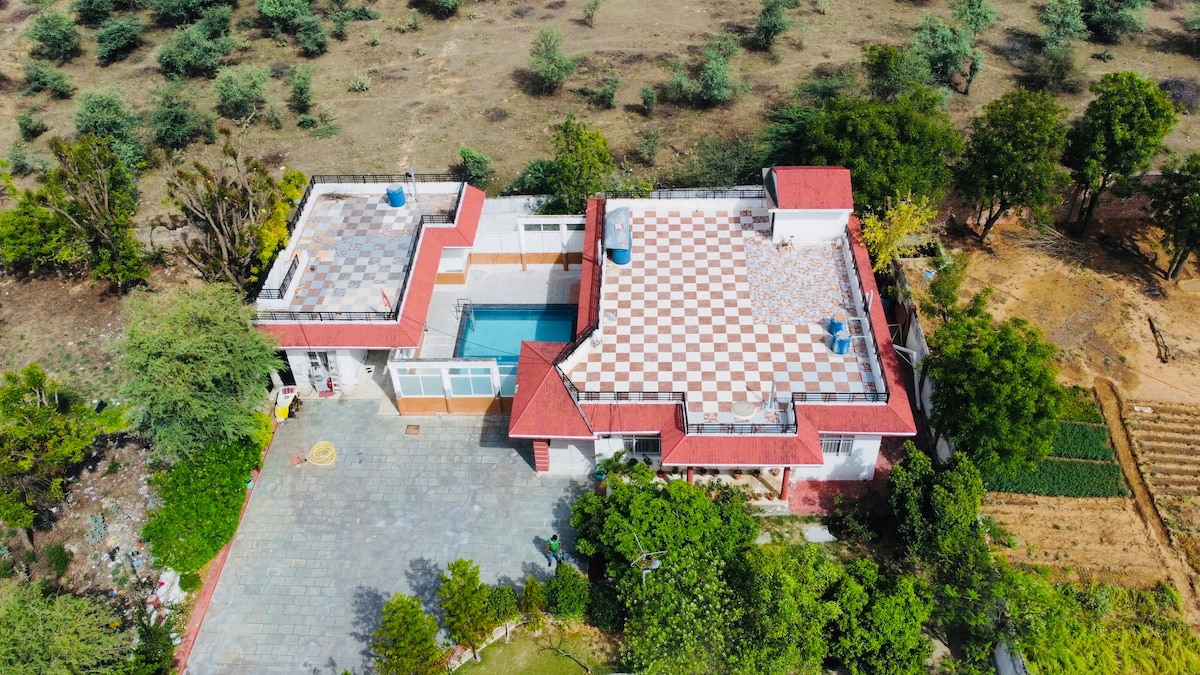 Doğayla çevrili ve şehrin koşuşturmacasından uzak olan çiftlik evi, Jaipur'dan kolayca erişilebilir olsa da sessiz ve ferahlatıcı bir ortam sağlıyor. Highlights: • Yüzme havuzu. • müzik çalar mevcut • Ekstra yatak, yastık ve battaniye mevcuttur. • 2 büyük, geniş yatak odası • Yemek, oturma ve TV alanı olan büyük salon • 15 -20 kişilik toplantılar için idealdir. • 3 -4 araçlık otopark • Şehir gürültüsünden uzak huzurlu konum • Jaipur şehrine sadece 25 km uzaklıktadır.