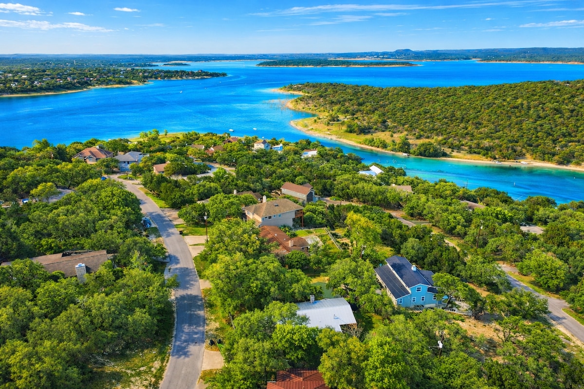 Canyon Lake Barajı'nın altındaki Guadalupe Nehri üzerinde lüks kulübe