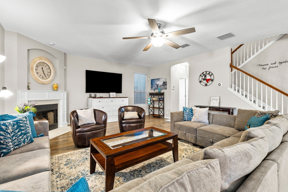 Tüm aile için bir sürü iç ve dış mekan eğlencesi! Tiyatro odası film gecesi, karaoke ve oyun için harika! Geniş evimizde 120 inç projektör ekranı, Xbox Series S, PlayStation 5, karaoke ve Dolby Atmos surround ses sistemine sahip bir sinema odası bulunmaktadır. Dışarıda odun ateşi ve propan ateşi ve ısıtmalı bir yeraltı havuzu bulunmaktadır. Havuz 20x10 ve 5 ft derinliğindedir. Büyük bir grubu ağırlamak için bolca oturma yeri sunuyoruz. Alamo 5 mil, Riverwalk 4 mil, Alamodome 6 mil, Kongre Merkezi 5,5 mil