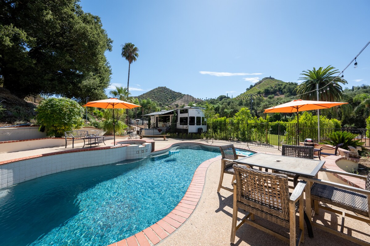10 ⭐️ KONUM: Süper Ev Sahibi tarafından/ Açık hava Kosta Rika tarzı mutfak ve banyo/ Sta Monica Körfezi havuzdan okyanus manzarası. Süper rahat, konforlu bir karavan ve özel ahşap veranda. Gürültülü şehirden mükemmel kaçış! Bir inziva yeri/ışık alan, büyük pencereleri ve vinil döşemesi olan bir yer. İnanılmaz sonsuzluk havuzu, jakuzi ve şelaleye yakın, yemyeşil tropikal peyzajın arasında yer alıyor. Yürüyüş, otopark, Topanga ve Sta Monica'ya yakın ve vadi alışverişi. Hızlı kablosuz internet bağlantısı. Atlar. Araba gerekiyor! Evcil hayvan yasaktır! Sigara içmek yasaktır!