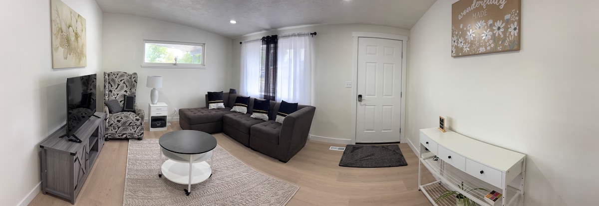 Hem Utah First Credit Union Amphitheatre (eski adıyla USANA) hem de Olympic Ice Oval'a 2 mil mesafede bulunan süitimizde duş, tuvalet ve derin lavabo bulunan kendi banyosu bulunmaktadır. 50 inçlik Roku TV, queen boy yoğun köpük şilte ve tam yatak haline gelen bir kanepe vardır. Bu, garajımızın arkasına inşa edilmiş bir oda. Mini buzdolabı, mikrodalga fırın ve elektrikli su ısıtıcısı/sıcak içecekler dahildir. Lütfen siz veya grubunuzdan herhangi biri herhangi bir şey içiyorsa rezervasyon yapmayın.
