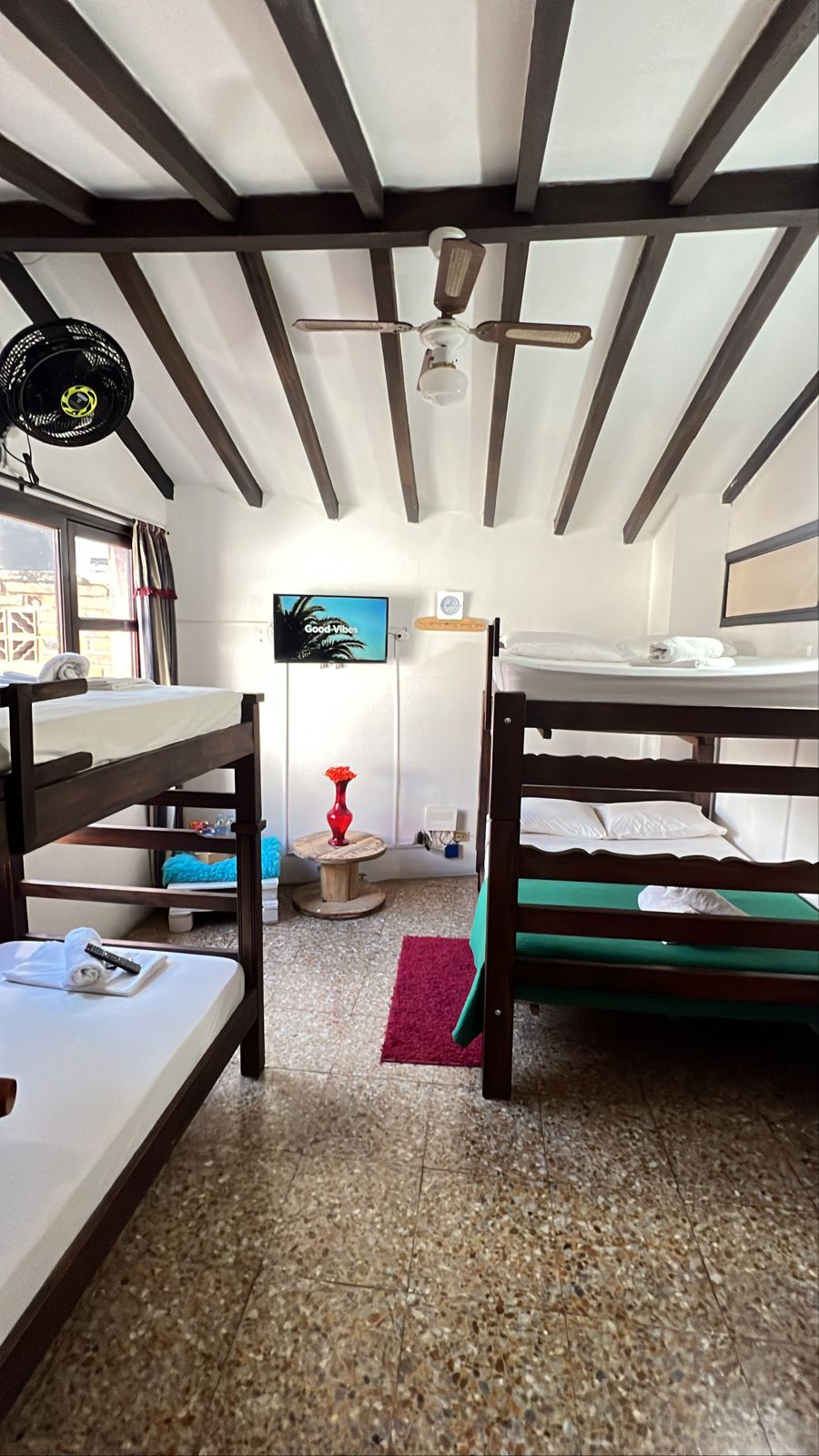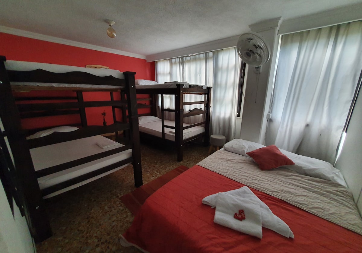 Bir hosteldir. Çift kişilik yatağı, çift kişilik yatağı ve iki basit ranzası olan özel banyolu bir aile odamız vardır, yani on kişiye kadar kapasiteye sahiptir. Ayrıca bir vantilatörü ve havuz, bahçe ve hamak alanı gibi ortak alanlara erişimi vardır.