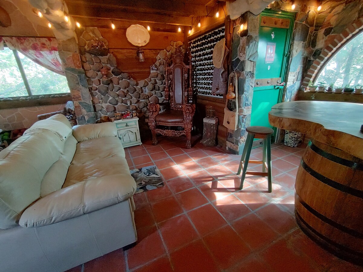 Relájate en esta escapada única y tranquila. "La Peque" es una cabaña tamaño cama matrimonial, muy acogedora, en la estadía podrás convivir con un jabalí 🐗 vietnamita, un par de borregos🐑🐑 y con Nirvana 🐺. tienes acceso a un baño, patio, comedor y lobby comunitario. Nota, bajo encargo con un costo extra podrás usar la zona de fogata$200 o de parrilla $200 con leña incluida. 🌲🌲🌲🌳🌲🌳🌳🌳🌳🌲🌲🌲