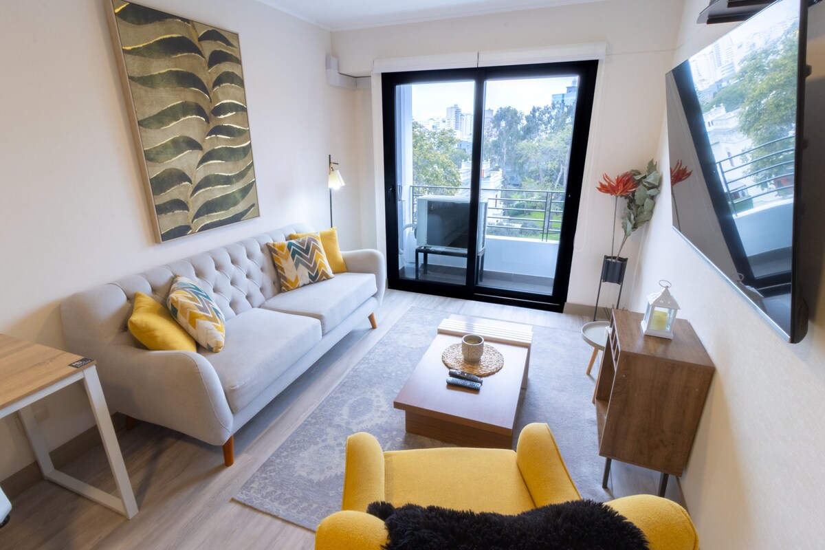 Lima'nın en merkezi bölgesi olan Av Arequipa'daki bu güzel ve özel dairede, yeşil alanlara ve El Olivar de San Isidro'ya en iyi manzaraya sahip konaklama deneyimini yaşayın. Mekân, 2 kişinin konforu için tasarlanmıştır, tam bir banyoya ve ihtiyacınız olan tüm olanaklara sahiptir. Lima'nın en turistik bölgelerine (El Olivar ormanı), Miraflores'e vb. hızlı bir şekilde ulaşabilirsiniz.