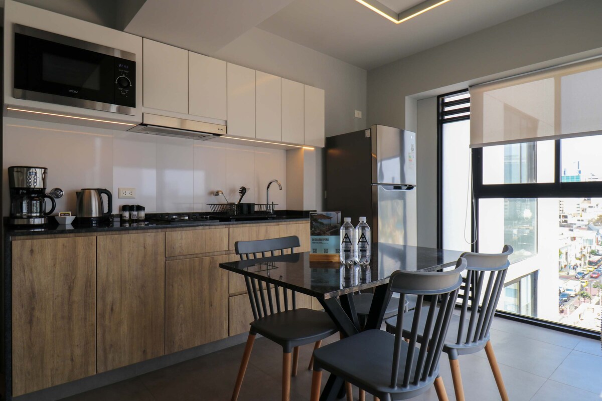Kennedy Parkı'nın hemen karşısında, Miraflores'un en stratejik ve canlı bölgesinde konaklamanızın keyfini çıkarın. Etrafınızda restoranlar, kafeler, süpermarketler ve bankalar olacak, hepsi sadece birkaç adım uzakta. Şehirde konfor, bağlantı ve en iyi konumu arayan hem tatil hem de iş seyahati yapanlar için ideal. Tam donanımlı bir mutfak, konforlu bir queen boy yatak, özel çalışma alanı, akıllı TV ve yüksek hızlı kablosuz internet bağlantısı içerir. Dinlenmek veya tam konfor içinde çalışmak için mükemmel.