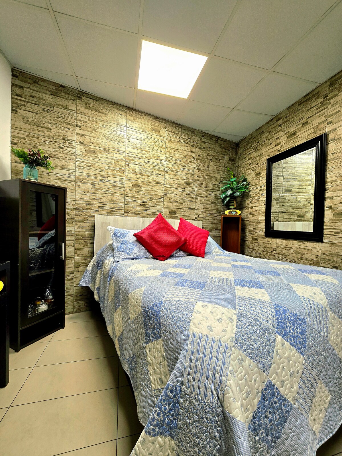 Habitación cómoda, a 10 min de los outlets y 20 del aeropuerto. Se ofrece también servicio de transporte un 15% más barato que Uber. Podemos agregar por un costo adicional, una cama individual en la habitación, en caso que lo necesites. Estacionamiento, condominio cerrado con vigilancia.