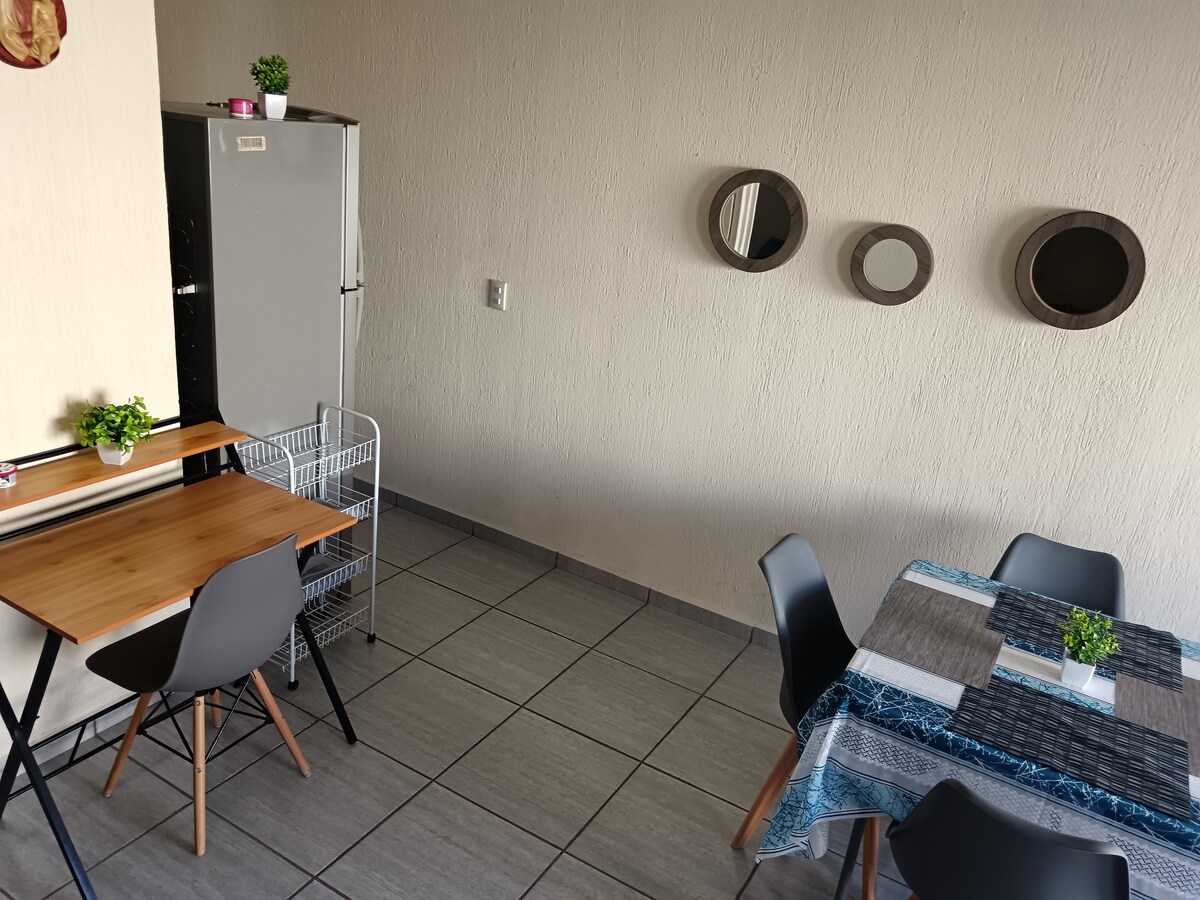 Vista California'daki bu konforlu ve modern dairede, Guadalajara Havaalanı'na sadece 15 dakika, cut Tonala'ya 8 dakika, VFG arenasına 20 dakika ve sanayi bölgesine yakın. İş için seyahat edenler, mola veren turistler veya sadece huzur, güvenlik ve şehre kolay erişim arayanlar için idealdir. Mekân şunları içerir: • 2 odalı tüm daire • Kablosuz internet bağlantısı ve TV Kendinizi evinizde hissetmeniz için gereken her şeyin keyfini çıkarın