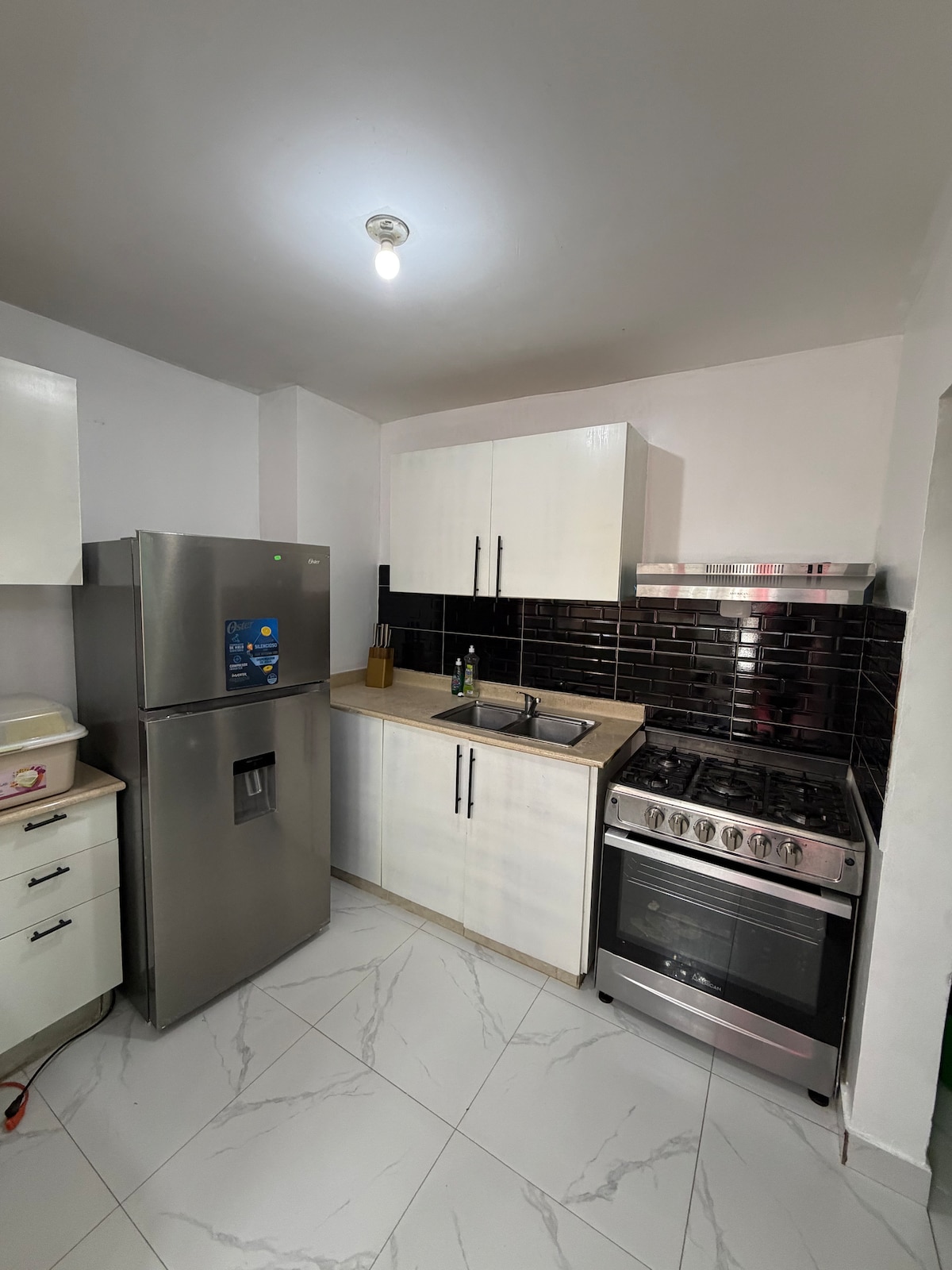 This super cozy 3-bedroom apartment is located in Lucero, very close to the center of San Juan De La Maguana. With a modern and elegant design, this apartment is perfect for people who are looking for a comfortable stay. The kitchen is well equipped with all the needed tools and appliances. It's well located near a supermarket, a pharmacy and shops nearby, you can even go by walk.