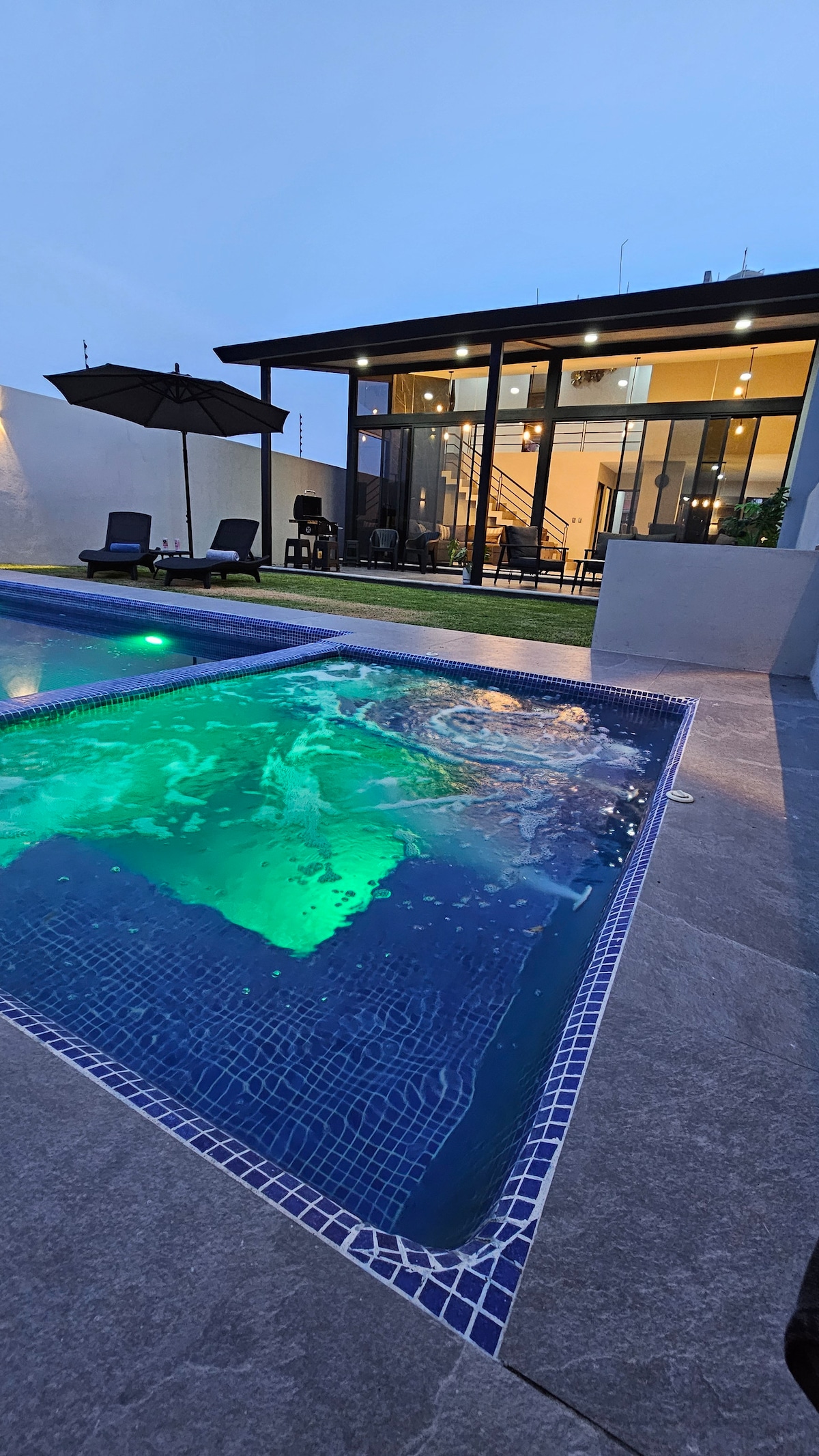 Liberate del estres de la ciudad y disfruta de un fin de semana en familia o con amigos, en una zona exclusiva. La casa es nueva y cuenta con dos jardines, alberca privada climatizada con paneles solares que la mantienen a temperatura ambiente, recámara principal con cama queen size, habitación secundaria con dos camas matrimoniales, aire acondicionado en las recamaras y sala comedor estacionamiento privado y seguridad 24 hrs. Al final de la estadía, nosotros nos hacemos cargo de la limpieza.