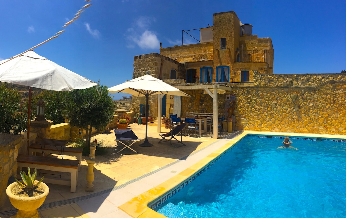 Gozo, Malta'da havuzlu geleneksel çiftlik evi