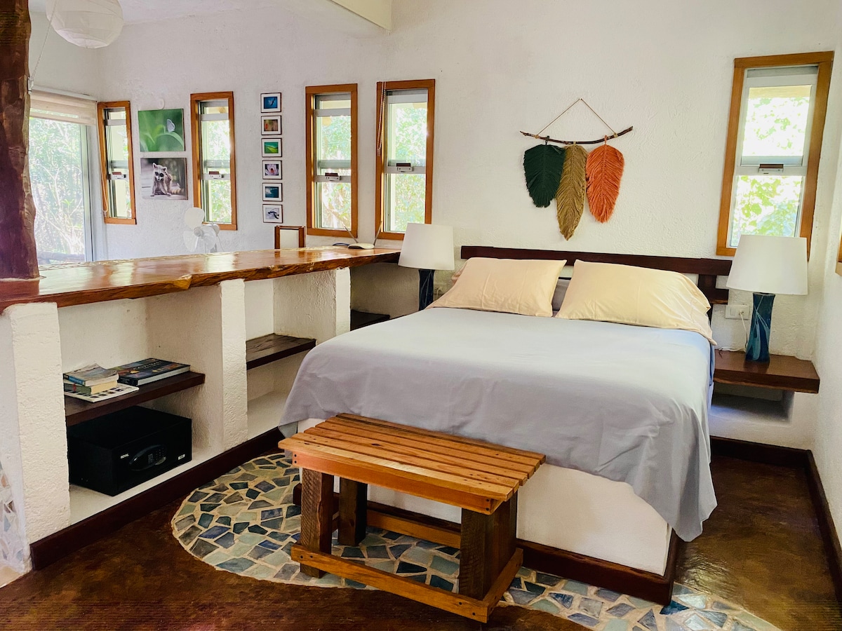 Cozumel Ormanı'nda bulunan fotovoltaik paneller ve güneş enerjili su ısıtıcısı ile şebeke dışı çevre dostu bungalov. Mekân, dinlenmek için ideal, çevreye ve çevresine saygılı bir şekilde tasarlanmıştır. Ev sahipleri kendilerini tüplü dalış ve fotoğrafçılık yapmaya adamıştır ve hizmetlerini kişisel olarak sunar. Keyifli bir konaklama için bisikletlerimiz ve tüm konforumuz var. Cozumel adasında yeşil bir seçenek sunuyoruz.